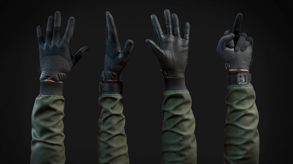 -set of textures (metalness roughness workflow) for arms and watch (arms has two versions with tattoos and without)